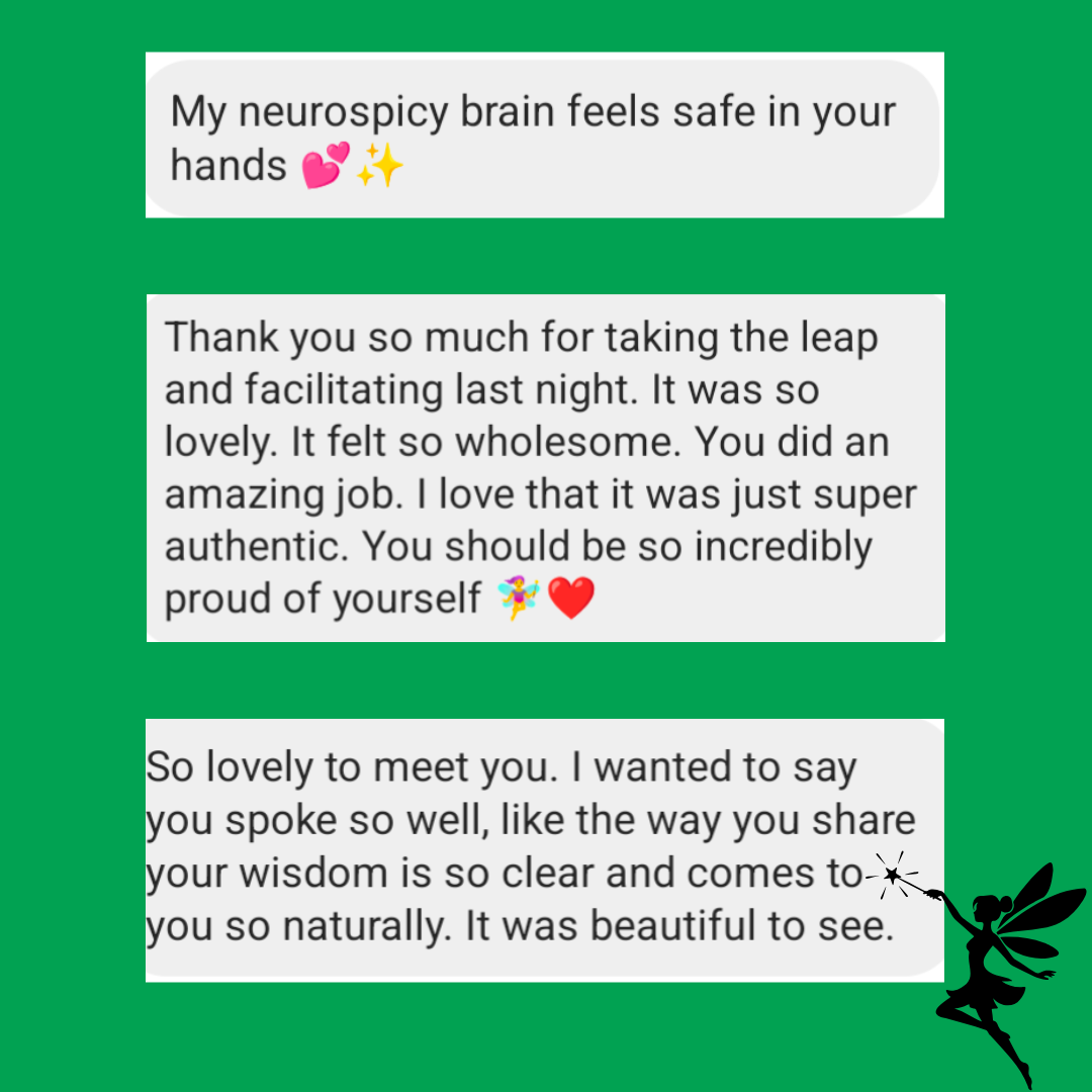 My clients often say I’m like their personal “spiritual fairy godmother”—because I say what needs to be said, hold space without the fluff, and help them see what they couldn’t see alone.