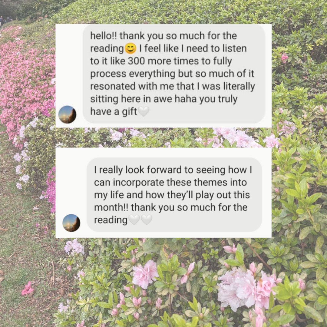 Picture yourself navigating each month with a sense of purpose and alignment. This reading offers insights to help you find joy in the small things and understand how to bring more magic and meaning into your life. It’s a chance to step into a version of yourself that feels more connected, authentic, and ready to embrace life’s surprises.